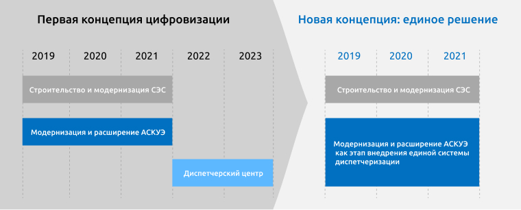 На старте проекта система учёта электроэнергии задумывалась как отдельная, замкнутая система. После проработки нескольких решений было принято решение строить систему учёта электроэнергии как составляющий элемент единой системы цифровизации энергохозяйства разреза и добавлять новые сигналы и приборы по мере необходимости и по мере их появления.
