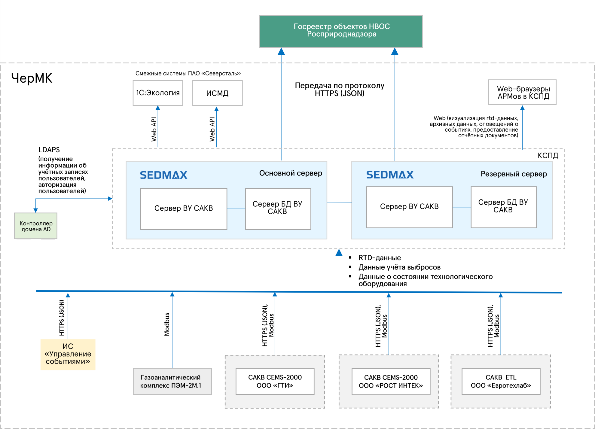Поскольку SEDMAX уже прошёл испытания автоматической передачи данных в РПН (подробнее об этом тут и тут), было принято решение передавать все данные через SEDMAX, организовав «единую САКВ».